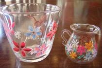 <グラスアート ビードロ> 朝晩、過ごしやすくなりましたね。 目覚めたら、おなかを冷やした(?)と 思った日もあります(笑) めっきり、秋らしくなりグラスも衣替えです。 秋柄新作入荷のお知らせです!! 秋・・・・ コスモスと風車 フリーカップ1260円 ミルクピッチャー683円 是非皆様のご来店お待ちしています。