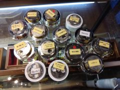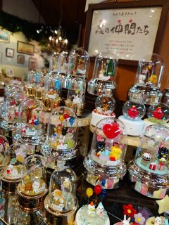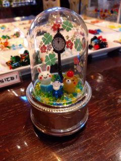 店内にずらりと並ぶガラス細工を使ったオルゴール。