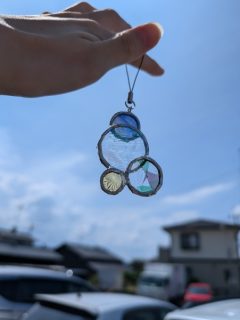 ↑初めて作った作品です。ガラス板を丸く切るのが難しくて大変でした。。。