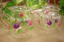 【グラスアート ビードロ】 当店オリジナルの大人気手描きシリーズに、新商品が仲間入りしました!!! ミルクピッチャー 683円 くびれ姿の台形型と、コロンとした姿が愛くるしい丸