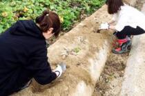 糸島農園で、湯布院とハウステンボスのメンバーで 芋掘りと陶芸教室に参加しました♪ まずは到着後早速、芋を掘ります!! 掘り掘り… 芋は見えてるのになかなか抜けませんὊ